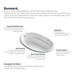 Kohler Sunward 66″ Drop In or Undermount Acrylic Whirlpool Tub with Reversible Drain and Overflow
